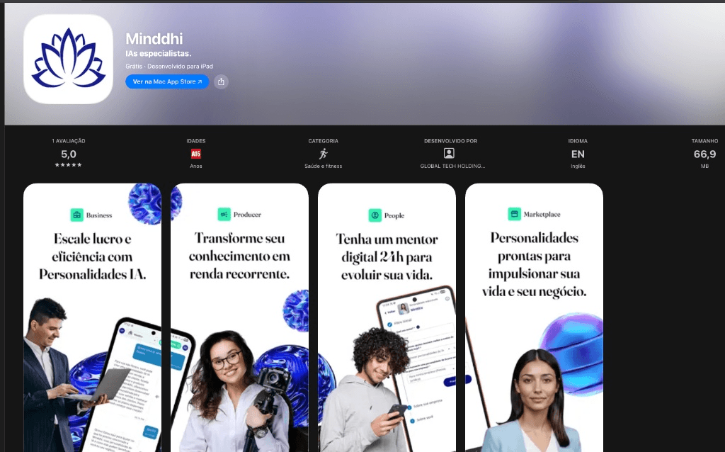 O app também integra um marketplace de personalidades, permitindo que especialistas publiquem e comercializem suas próprias inteligências digitais, enquanto usuários acessam mentores e assistentes especializados para diferentes áreas da vida e do trabalho.