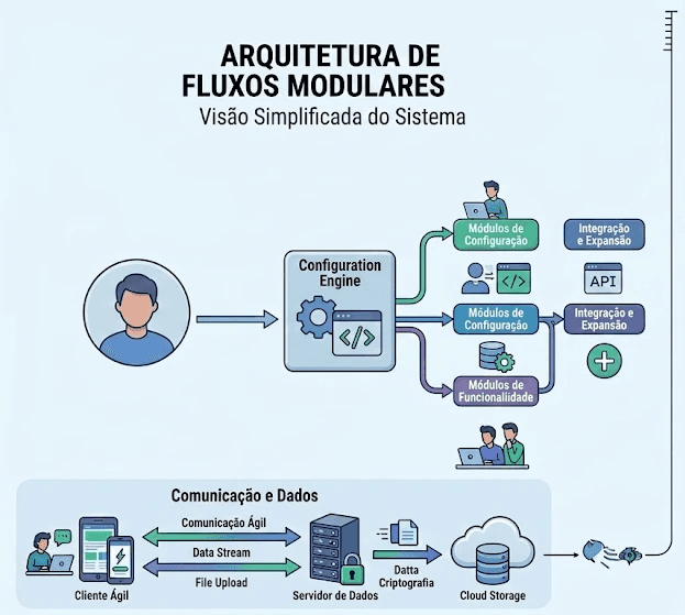A arquitetura baseada em fluxos e atributos dinâmicos possibilitou a criação e adaptação de novas personalidades, jornadas e funcionalidades diretamente via backend, reduzindo o custo e o tempo de entrega de novas features.