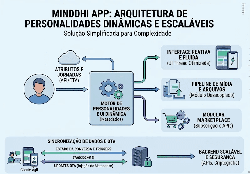Arquitetura Baseada em Metadados: Implementação de um motor de renderização dinâmica onde a UI não é estática, mas construída a partir de contratos de API. Isso permitiu que novos atributos de personalidade e fluxos de jornada fossem injetados sem a necessidade de novos deploys nas lojas (OTA-ready logic).